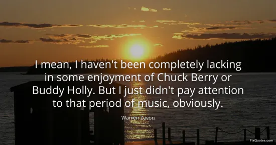 Zevon, Warren. "I mean, I haven't been completely lacking in some enjoyment of Chuck Berry or Buddy Holly. But I just didn't pay attention to that period of music, obviously." FixQuotes. January 17, 2026. https://fixquotes.com/quotes/i-mean-i-havent-been-completely-lacking-in-some-78266/.