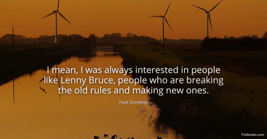 Dunaway, Faye. (2026, January 17). I mean, I was always interested in people like Lenny Bruce, people who are breaking the old rules and making new ones. FixQuotes. https://fixquotes.com/quotes/i-mean-i-was-always-interested-in-people-like-65814/