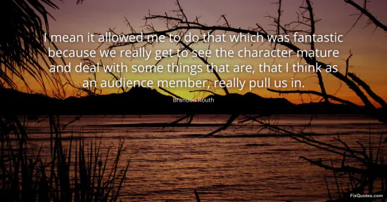Routh, Brandon. "I mean it allowed me to do that which was fantastic because we really get to see the character mature and deal with some things that are, that I think as an audience member, really pull us in." FixQuotes. January 17, 2026. https://fixquotes.com/quotes/i-mean-it-allowed-me-to-do-that-which-was-75114/.