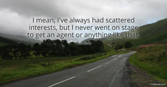"I mean, I've always had scattered interests, but I never went on stage to get an agent or anything like that." FixQuotes, 16 Jan. 2026, https://fixquotes.com/quotes/i-mean-ive-always-had-scattered-interests-but-i-99607/. Accessed 13 Feb. 2026.