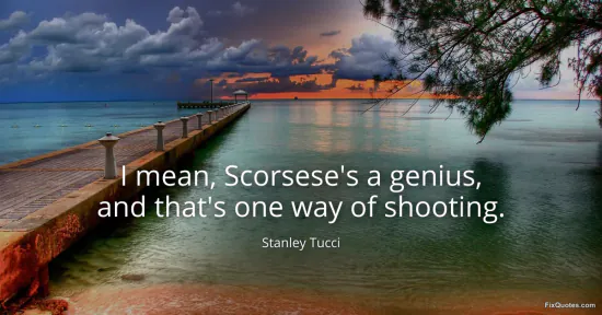 Tucci, Stanley. (2026, January 17). I mean, Scorsese's a genius, and that's one way of shooting. FixQuotes. https://fixquotes.com/quotes/i-mean-scorseses-a-genius-and-thats-one-way-of-63464/