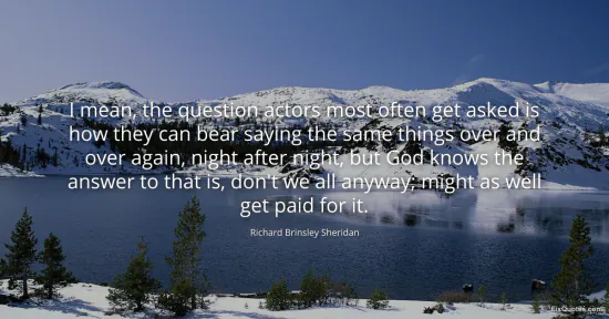 Sheridan, Richard Brinsley. "I mean, the question actors most often get asked is how they can bear saying the same things over and over again, night after night, but God knows the answer to that is, don't we all anyway; might as well get paid for it." FixQuotes. January 15, 2026. https://fixquotes.com/quotes/i-mean-the-question-actors-most-often-get-asked-153089/.