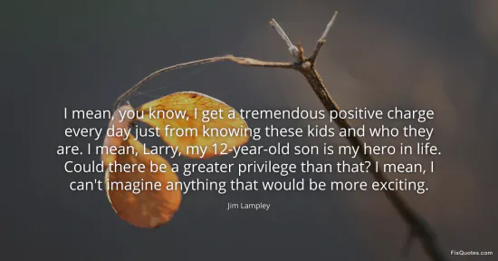 Lampley, Jim. (2026, January 16). I mean, you know, I get a tremendous positive charge every day just from knowing these kids and who they are. I mean, Larry, my 12-year-old son is my hero in life. Could there be a greater privilege than that? I mean, I can't imagine anything that would be more exciting. FixQuotes. https://fixquotes.com/quotes/i-mean-you-know-i-get-a-tremendous-positive-92375/