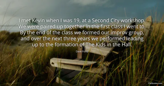 Foley, Dave. "I met Kevin when I was 19, at a Second City workshop. We were paired up together in the first class I went to. By the end of the class we formed our improv group, and over the next three years we performed leading up to the formation of The Kids in the Hall." FixQuotes. January 18, 2026. https://fixquotes.com/quotes/i-met-kevin-when-i-was-19-at-a-second-city-7862/.