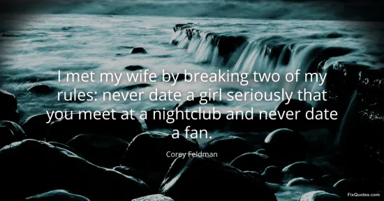 Feldman, Corey. (2026, January 16). I met my wife by breaking two of my rules: never date a girl seriously that you meet at a nightclub and never date a fan. FixQuotes. https://fixquotes.com/quotes/i-met-my-wife-by-breaking-two-of-my-rules-never-110113/