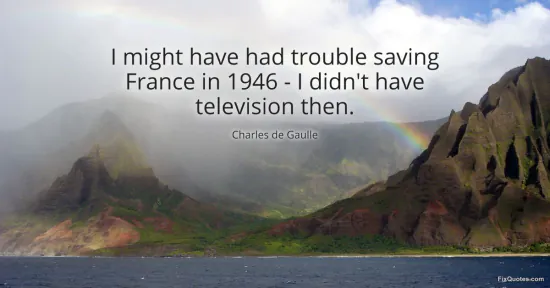 Gaulle, Charles de. "I might have had trouble saving France in 1946 - I didn't have television then." FixQuotes. January 15, 2026. https://fixquotes.com/quotes/i-might-have-had-trouble-saving-france-in-1946-44851/.