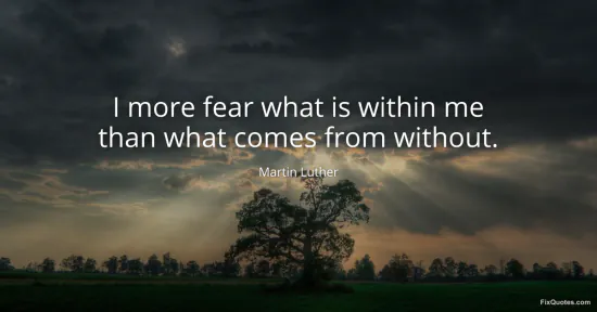 Luther, Martin. (2026, January 18). I more fear what is within me than what comes from without. FixQuotes. https://fixquotes.com/quotes/i-more-fear-what-is-within-me-than-what-comes-14062/