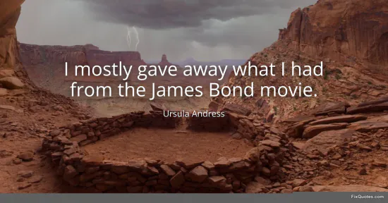 Andress, Ursula. (2026, January 17). I mostly gave away what I had from the James Bond movie. FixQuotes. https://fixquotes.com/quotes/i-mostly-gave-away-what-i-had-from-the-james-bond-65550/
