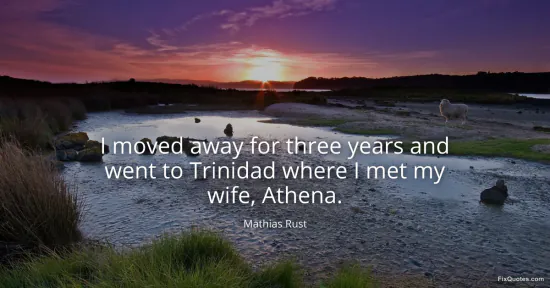 Rust, Mathias. (2026, January 15). I moved away for three years and went to Trinidad where I met my wife, Athena. FixQuotes. https://fixquotes.com/quotes/i-moved-away-for-three-years-and-went-to-trinidad-143160/