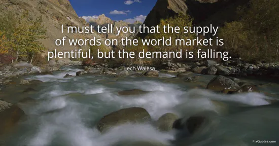 Walesa, Lech. "I must tell you that the supply of words on the world market is plentiful, but the demand is falling." FixQuotes. January 16, 2026. https://fixquotes.com/quotes/i-must-tell-you-that-the-supply-of-words-on-the-99029/.