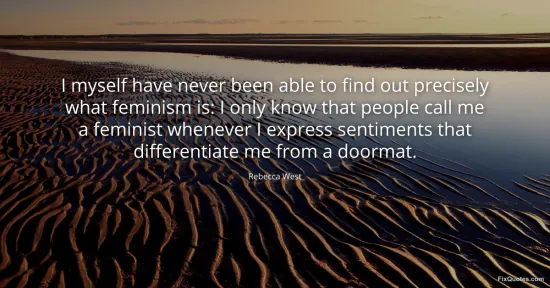 West, Rebecca. (2026, February 7). I myself have never been able to find out precisely what feminism is: I only know that people call me a feminist whenever I express sentiments that differentiate me from a doormat. FixQuotes. https://fixquotes.com/quotes/i-myself-have-never-been-able-to-find-out-83259/