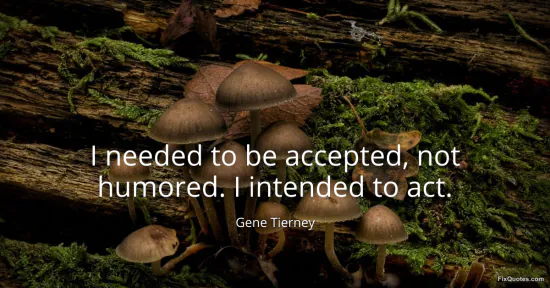 Tierney, Gene. (2026, January 15). I needed to be accepted, not humored. I intended to act. FixQuotes. https://fixquotes.com/quotes/i-needed-to-be-accepted-not-humored-i-intended-to-146457/