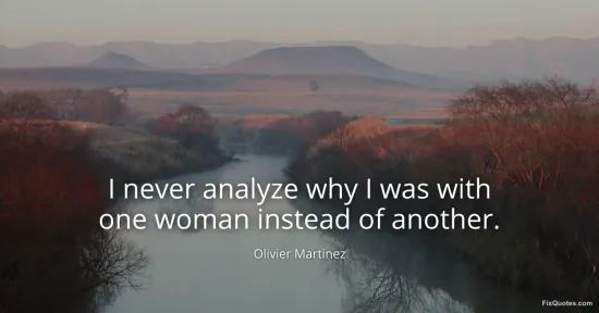 Martinez, Olivier. (2026, January 18). I never analyze why I was with one woman instead of another. FixQuotes. https://fixquotes.com/quotes/i-never-analyze-why-i-was-with-one-woman-instead-13543/