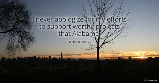 Shelby, Richard. (2026, January 15). I never apologize for my efforts to support worthy projects that Alabama. FixQuotes. https://fixquotes.com/quotes/i-never-apologize-for-my-efforts-to-support-159556/