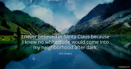 Gregory, Dick. (2026, February 24). I never believed in Santa Claus because I knew no white dude would come into my neighborhood after dark. FixQuotes. https://fixquotes.com/quotes/i-never-believed-in-santa-claus-because-i-knew-no-57901/