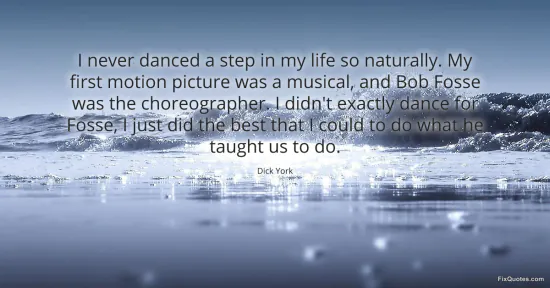 York, Dick. (2026, January 17). I never danced a step in my life so naturally. My first motion picture was a musical, and Bob Fosse was the choreographer. I didn't exactly dance for Fosse, I just did the best that I could to do what he taught us to do. FixQuotes. https://fixquotes.com/quotes/i-never-danced-a-step-in-my-life-so-naturally-my-55005/