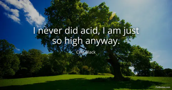 Black, Cilla. (2026, January 16). I never did acid, I am just so high anyway. FixQuotes. https://fixquotes.com/quotes/i-never-did-acid-i-am-just-so-high-anyway-130870/