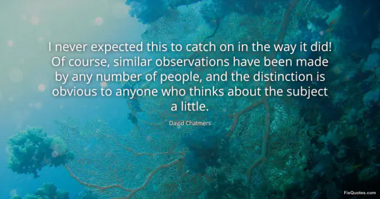 Chalmers, David. "I never expected this to catch on in the way it did! Of course, similar observations have been made by any number of people, and the distinction is obvious to anyone who thinks about the subject a little." FixQuotes. February 20, 2026. https://fixquotes.com/quotes/i-never-expected-this-to-catch-on-in-the-way-it-24714/.