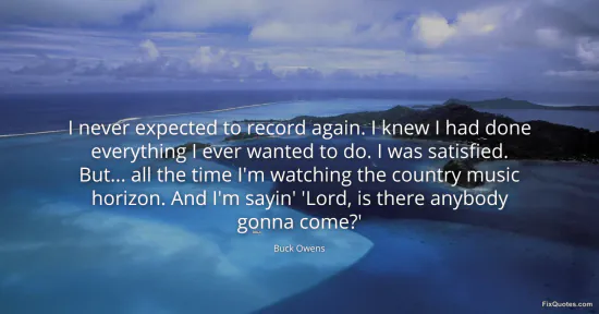 Owens, Buck. (2026, January 17). I never expected to record again. I knew I had done everything I ever wanted to do. I was satisfied. But... all the time I'm watching the country music horizon. And I'm sayin' 'Lord, is there anybody gonna come?'. FixQuotes. https://fixquotes.com/quotes/i-never-expected-to-record-again-i-knew-i-had-42310/