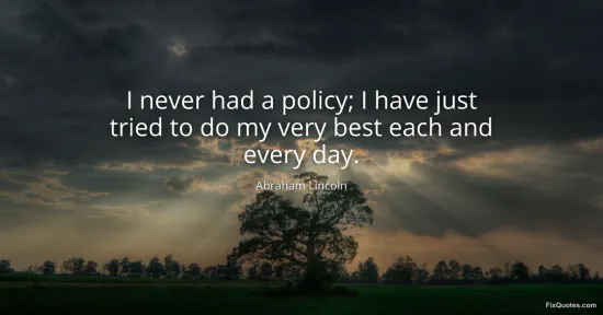 Lincoln, Abraham. (2026, February 12). I never had a policy; I have just tried to do my very best each and every day. FixQuotes. https://fixquotes.com/quotes/i-never-had-a-policy-i-have-just-tried-to-do-my-17738/