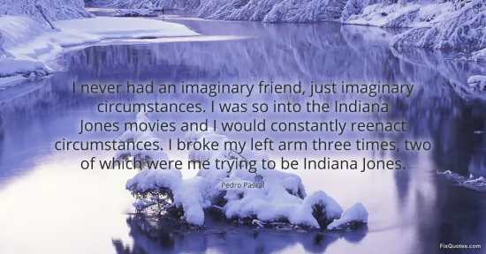 Pascal, Pedro. "I never had an imaginary friend, just imaginary circumstances. I was so into the Indiana Jones movies and I would constantly reenact circumstances. I broke my left arm three times, two of which were me trying to be Indiana Jones." FixQuotes. February 9, 2026. https://fixquotes.com/quotes/i-never-had-an-imaginary-friend-just-imaginary-184984/.