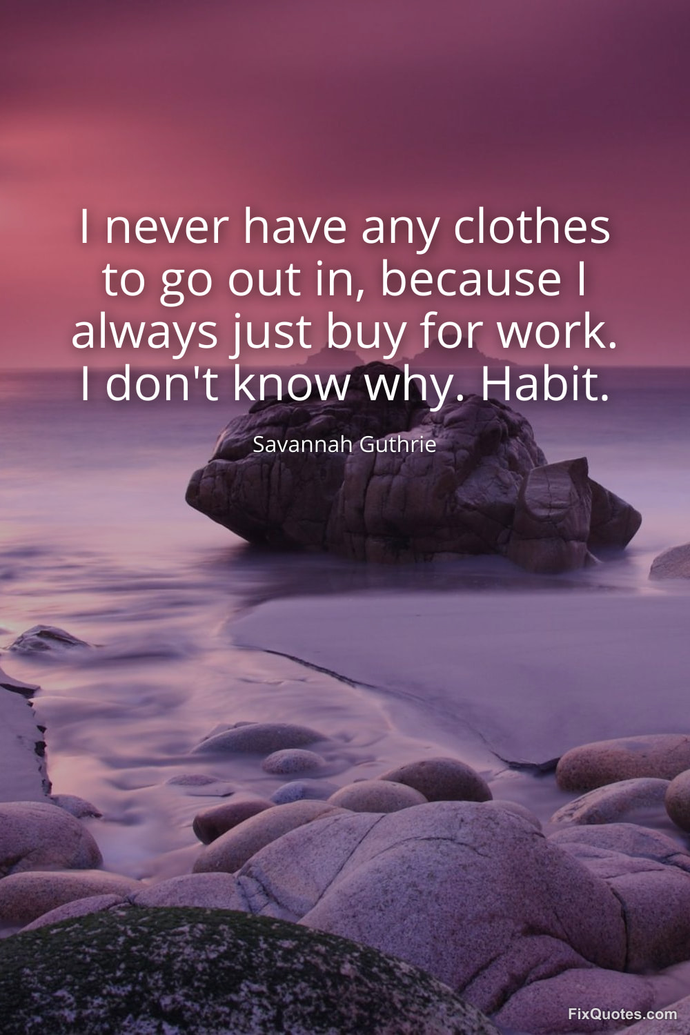 Guthrie, Savannah. (2026, February 11). I never have any clothes to go out in, because I always just buy for work. I don't know why. Habit. FixQuotes. https://fixquotes.com/quotes/i-never-have-any-clothes-to-go-out-in-because-i-185271/