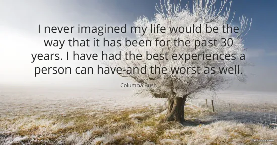 Bush, Columba. (2026, January 16). I never imagined my life would be the way that it has been for the past 30 years. I have had the best experiences a person can have-and the worst as well. FixQuotes. https://fixquotes.com/quotes/i-never-imagined-my-life-would-be-the-way-that-it-135014/