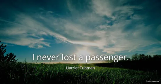 Tubman, Harriet. (2026, January 15). I never lost a passenger. FixQuotes. https://fixquotes.com/quotes/i-never-lost-a-passenger-58929/