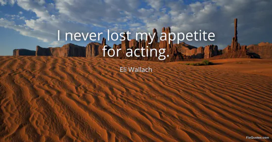 Wallach, Eli. (2026, January 15). I never lost my appetite for acting. FixQuotes. https://fixquotes.com/quotes/i-never-lost-my-appetite-for-acting-50815/