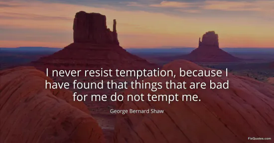 Shaw, George Bernard. (2026, January 17). I never resist temptation, because I have found that things that are bad for me do not tempt me. FixQuotes. https://fixquotes.com/quotes/i-never-resist-temptation-because-i-have-found-29130/