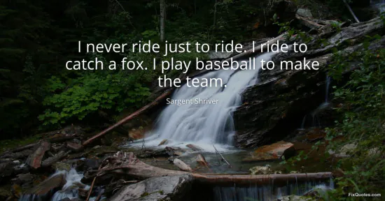 Shriver, Sargent. (2026, January 17). I never ride just to ride. I ride to catch a fox. I play baseball to make the team. FixQuotes. https://fixquotes.com/quotes/i-never-ride-just-to-ride-i-ride-to-catch-a-fox-i-65282/