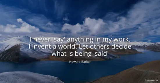 Barker, Howard. (2026, January 16). I never 'say' anything in my work. I invent a world. Let others decide what is being 'said'. FixQuotes. https://fixquotes.com/quotes/i-never-say-anything-in-my-work-i-invent-a-world-118764/