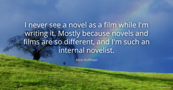 Hoffman, Alice. (2026, January 17). I never see a novel as a film while I'm writing it. Mostly because novels and films are so different, and I'm such an internal novelist. FixQuotes. https://fixquotes.com/quotes/i-never-see-a-novel-as-a-film-while-im-writing-it-35904/