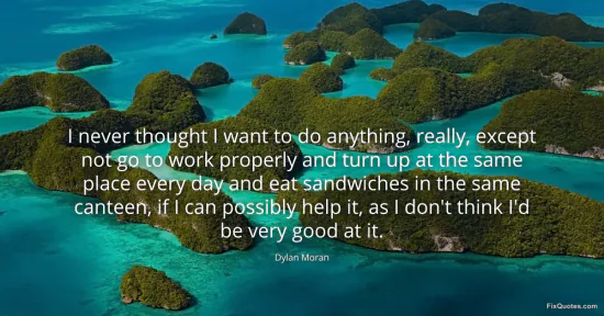 Moran, Dylan. (2026, January 16). I never thought I want to do anything, really, except not go to work properly and turn up at the same place every day and eat sandwiches in the same canteen, if I can possibly help it, as I don't think I'd be very good at it. FixQuotes. https://fixquotes.com/quotes/i-never-thought-i-want-to-do-anything-really-132923/
