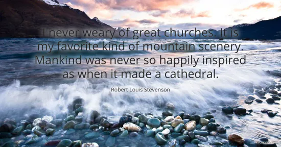 Stevenson, Robert Louis. (2026, January 15). I never weary of great churches. It is my favorite kind of mountain scenery. Mankind was never so happily inspired as when it made a cathedral. FixQuotes. https://fixquotes.com/quotes/i-never-weary-of-great-churches-it-is-my-favorite-20820/