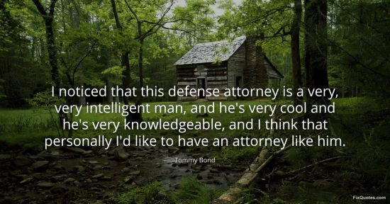 Bond, Tommy. "I noticed that this defense attorney is a very, very intelligent man, and he's very cool and he's very knowledgeable, and I think that personally I'd like to have an attorney like him." FixQuotes. January 16, 2026. https://fixquotes.com/quotes/i-noticed-that-this-defense-attorney-is-a-very-86718/.
