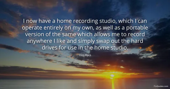 Black, Clint. (2026, January 15). I now have a home recording studio, which I can operate entirely on my own, as well as a portable version of the same which allows me to record anywhere I like and simply swap out the hard drives for use in the home studio. FixQuotes. https://fixquotes.com/quotes/i-now-have-a-home-recording-studio-which-i-can-167212/