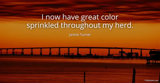 Turner, Janine. (2026, January 15). I now have great color sprinkled throughout my herd. FixQuotes. https://fixquotes.com/quotes/i-now-have-great-color-sprinkled-throughout-my-51749/