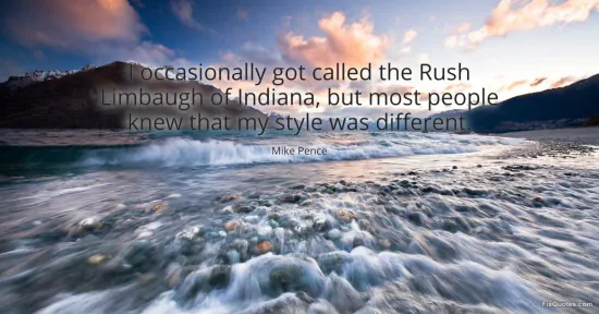 Pence, Mike. "I occasionally got called the Rush Limbaugh of Indiana, but most people knew that my style was different." FixQuotes. January 17, 2026. https://fixquotes.com/quotes/i-occasionally-got-called-the-rush-limbaugh-of-58342/.