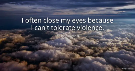Baranski, Christine. (2026, January 15). I often close my eyes because I can't tolerate violence. FixQuotes. https://fixquotes.com/quotes/i-often-close-my-eyes-because-i-cant-tolerate-145642/