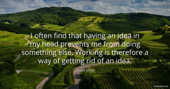 Johns, Jasper. "I often find that having an idea in my head prevents me from doing something else. Working is therefore a way of getting rid of an idea." FixQuotes. January 17, 2026. https://fixquotes.com/quotes/i-often-find-that-having-an-idea-in-my-head-56053/.