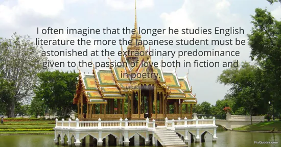 "I often imagine that the longer he studies English literature the more the Japanese student must be astonished at the extraordinary predominance given to the passion of love both in fiction and in poetry." FixQuotes, 17 Jan. 2026, https://fixquotes.com/quotes/i-often-imagine-that-the-longer-he-studies-70712/. Accessed 12 Feb. 2026.