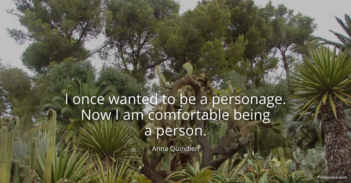 Quindlen, Anna. (2026, January 18). I once wanted to be a personage. Now I am comfortable being a person. FixQuotes. https://fixquotes.com/quotes/i-once-wanted-to-be-a-personage-now-i-am-1305/