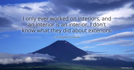 Eccleston, Christopher. "I only ever worked on interiors, and an interior is an interior. I don't know what they did about exteriors." FixQuotes. January 17, 2026. https://fixquotes.com/quotes/i-only-ever-worked-on-interiors-and-an-interior-59927/.