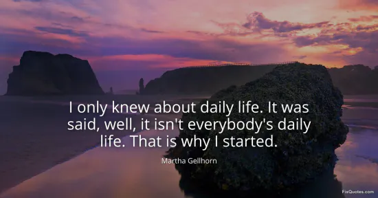 Gellhorn, Martha. (2026, January 17). I only knew about daily life. It was said, well, it isn't everybody's daily life. That is why I started. FixQuotes. https://fixquotes.com/quotes/i-only-knew-about-daily-life-it-was-said-well-it-77890/