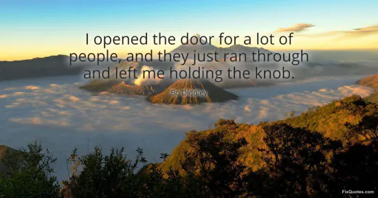 Diddley, Bo. (2026, January 17). I opened the door for a lot of people, and they just ran through and left me holding the knob. FixQuotes. https://fixquotes.com/quotes/i-opened-the-door-for-a-lot-of-people-and-they-51487/