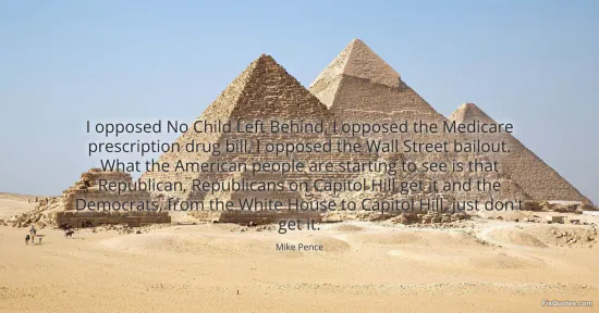 Pence, Mike. (2026, January 17). I opposed No Child Left Behind, I opposed the Medicare prescription drug bill, I opposed the Wall Street bailout. What the American people are starting to see is that Republican, Republicans on Capitol Hill get it and the Democrats, from the White House to Capitol Hill, just don't get it. FixQuotes. https://fixquotes.com/quotes/i-opposed-no-child-left-behind-i-opposed-the-51653/
