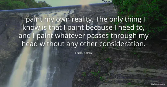 Kahlo, Frida. (2026, January 15). I paint my own reality. The only thing I know is that I paint because I need to, and I paint whatever passes through my head without any other consideration. FixQuotes. https://fixquotes.com/quotes/i-paint-my-own-reality-the-only-thing-i-know-is-31273/