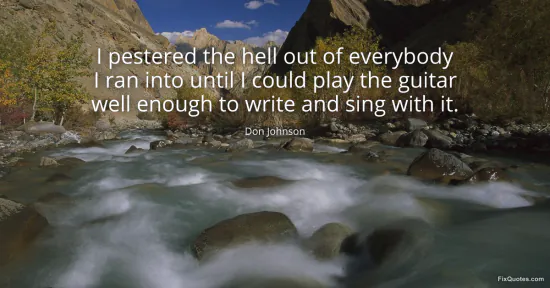 Johnson, Don. (2026, January 17). I pestered the hell out of everybody I ran into until I could play the guitar well enough to write and sing with it. FixQuotes. https://fixquotes.com/quotes/i-pestered-the-hell-out-of-everybody-i-ran-into-44253/