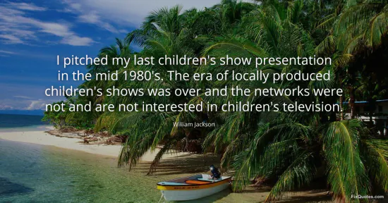 Jackson, William. (2026, January 17). I pitched my last children's show presentation in the mid 1980's. The era of locally produced children's shows was over and the networks were not and are not interested in children's television. FixQuotes. https://fixquotes.com/quotes/i-pitched-my-last-childrens-show-presentation-in-65730/